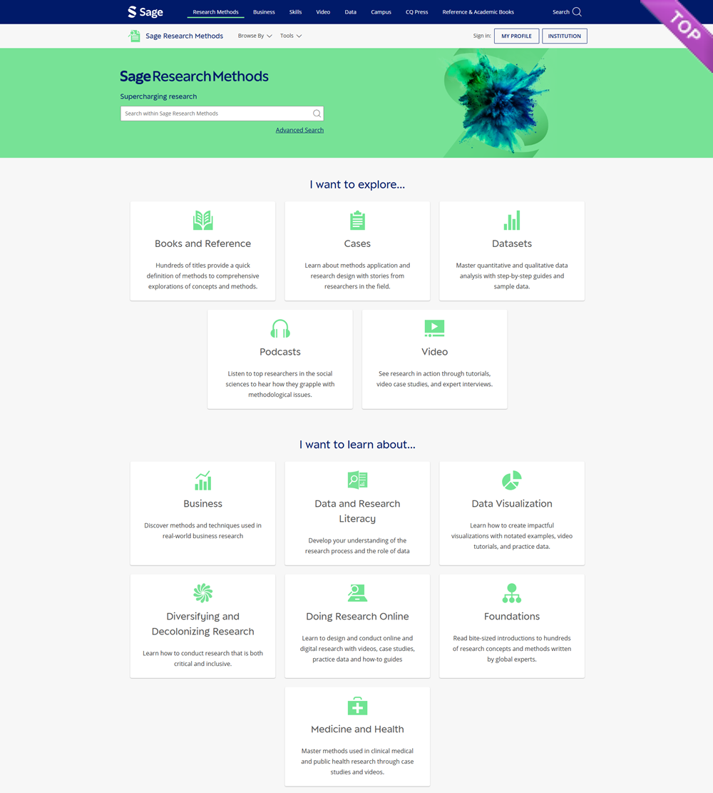 Sage Research Methods is a major subscription database that guides users in understanding research methodologies across different academic disciplines. It provides electronic access to reference books, journal articles, instructional videos, and other qualitative methods resources.